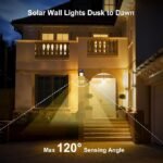 - Solar Powered & Auto On/Off: Solar energy supply, no extra utility electric cost, and no need to replace the battery. Light sensor controls the solar front porch lights auto on at auto and dark off at daytime. [NOTE]: The actual working time and required charging time are affected by the intensity of the sunlight.