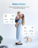 - 13 essential body measurements. The scale shows body weight only. Other body index data are stored in the app, including weight, BMI, and body fat percentage. You can weigh yourself anytime without your phone, and all the data will be uploaded to your App whenever you open the App and measure again. 13 body measurements show on App. Only Weight and BMI are shown on App for underage.
